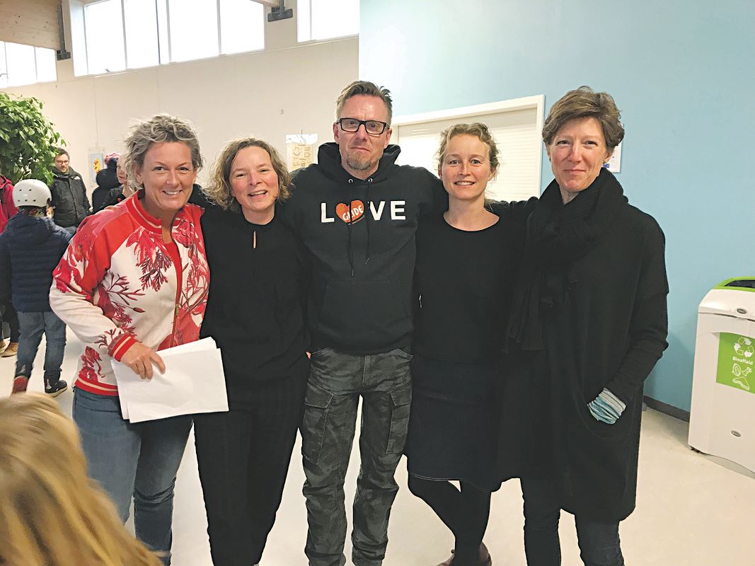 Et udvalg af hovedkræfterne bag Fanø Skoles projekt. Fra venstre: Annemette Kjærhus Sørensen, Anette Christensen, Alan Skelmose, Tina Borregård og Mette Bredthauer.